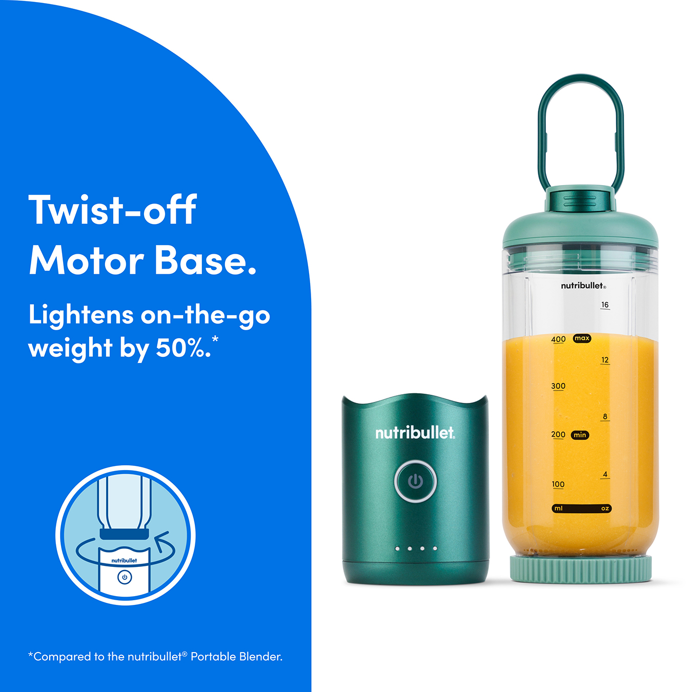 • Detachable, Travel-Ready Cup: Blend, twist it off, and take your smoothie anywhere – no need to carry the motor base once your drink is ready – Lightening the on-the-go weight by 50%!.
